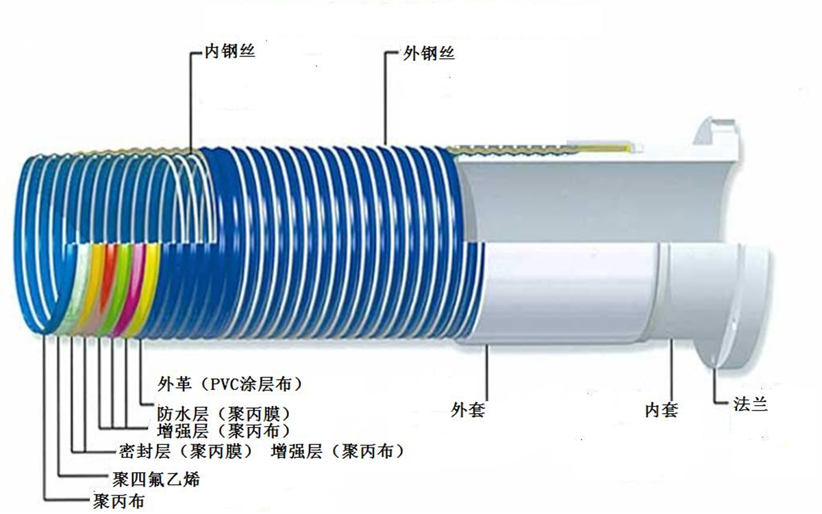 | GGT | 碳鋼鍍鋅 | 碳鋼鍍鋅 | 特制高強度聚丙(酯)織物、內襯PTFE、玻纖層、聚丙烯密封層及增強層。 | 阻燃耐溫抗紫外線PVC涂覆材料 | 對金屬腐蝕性不強的化工品,如苯類醇類等 |