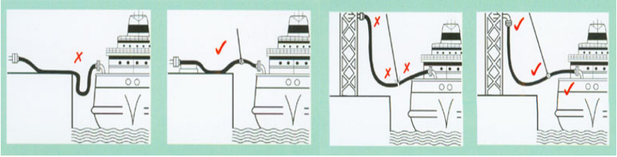 · 避免軟管直接靠在鋒利的邊緣上(如:碼頭邊緣或船舷邊緣);